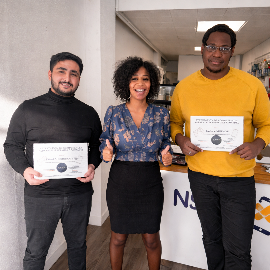 À l’issue de la formation, une attestation de compétence NGIEFIX est délivrée après validation des acquis. Cette attestation reconnaît votre capacité à effectuer les réparations courantes et peut vous permettre de lancer votre activité de réparation ou travailler dans un atelier.